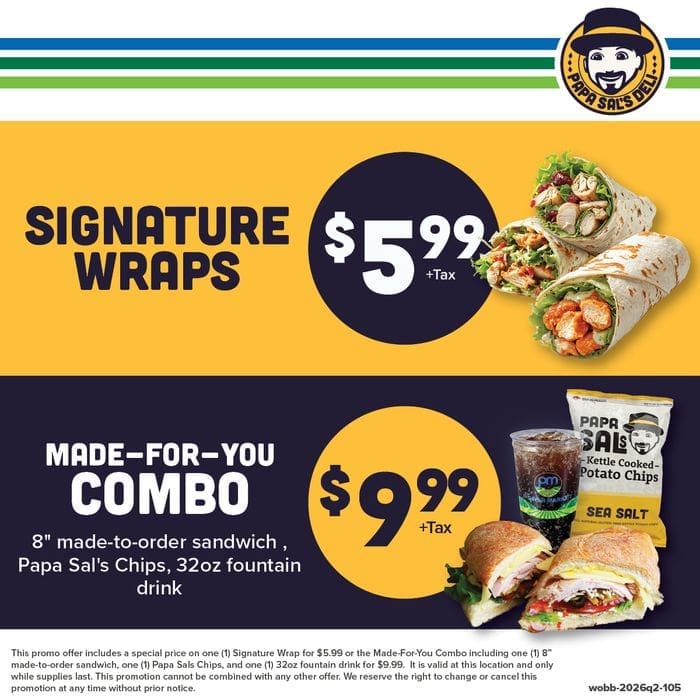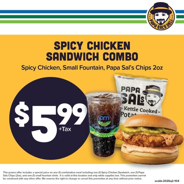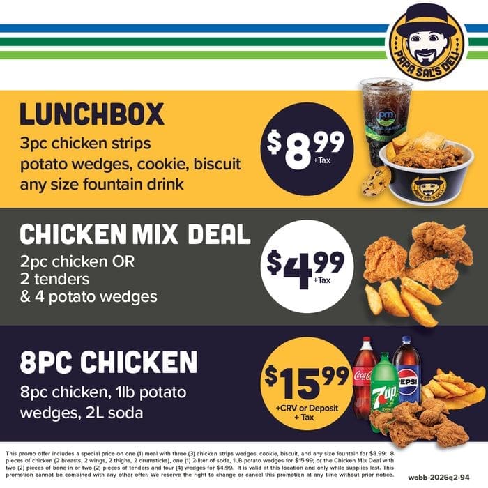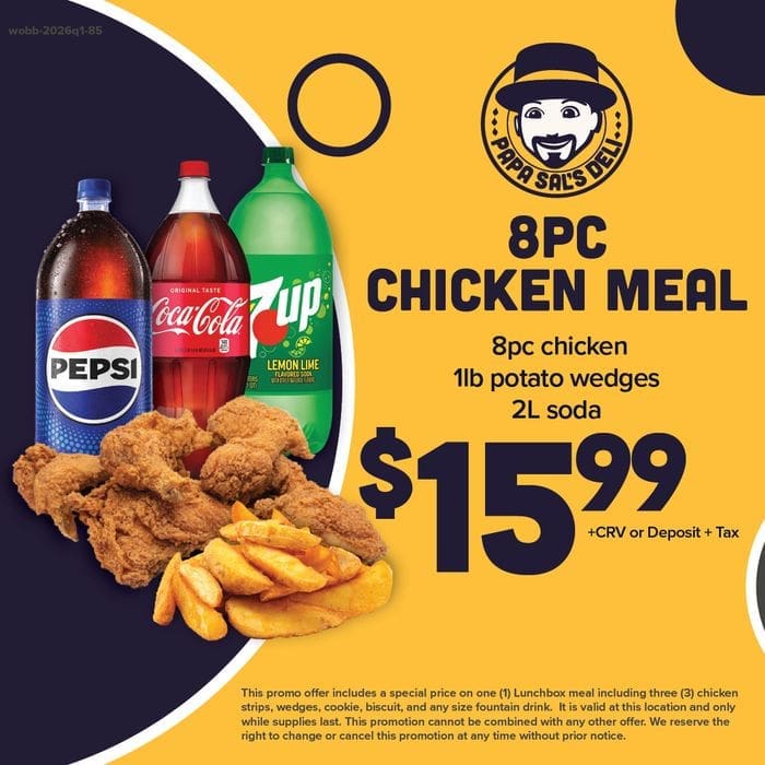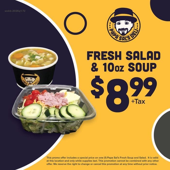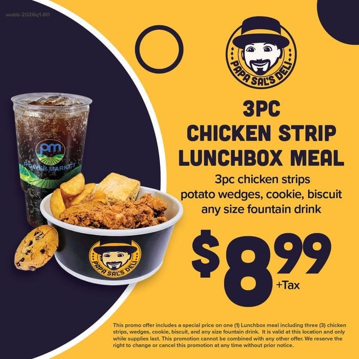 At Papa Sal's deli, our motto, "Taste fresh. Eat happy. Papa Sal's." encapsulates our commitment to delivering mouthwatering delights that leave you smiling. From made-to-order sandwiches to ready-made options, our menu boasts an array of choices. Savor our crispy fried chicken, explore vegetarian offerings, and embrace healthier meal options. Whether you're craving a quick bite or planning a family feast, Papa Sal's deli has something to satisfy every palate. Join us today and embark on a flavorful journey!